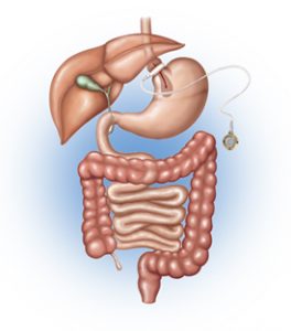 Patients usually require a few adjustments to the band over the next few months depending upon their individual needs. This procedure functionally restricts the size of the stomach and is considered a gastric restrictive procedure, although some suggest when it’s appropriately adjusted, it does decrease one’s appetite, as well. Of note, with this limited intake, if you eat too much at one meal, you may feel discomfort and may even vomit until you learn the capacity of your “new” stomach. The difference between this and other restrictive bariatric procedures is that the restrictive effect can be adjusted. This is currently the only bariatric procedure we offer that can be adjusted without surgery in the post-operative period. Weight loss occurs by restricted intake – the smaller stomach pouch creates the sensation of fullness earlier (satiety), thereby decreasing the desire for food and limiting the volume of food one is capable of consuming at one time.